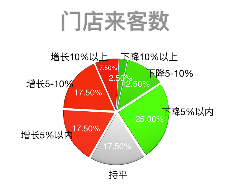 42.5%的超市企业实体门店来客数同比增加,40%同比下降。来客数的变化体现出企业经营能力的分化。来客数增长的企业中,四分之一企业销售额未同步增长。销售同比增长的企业中,近三分之一的企业来客数持平或下降。